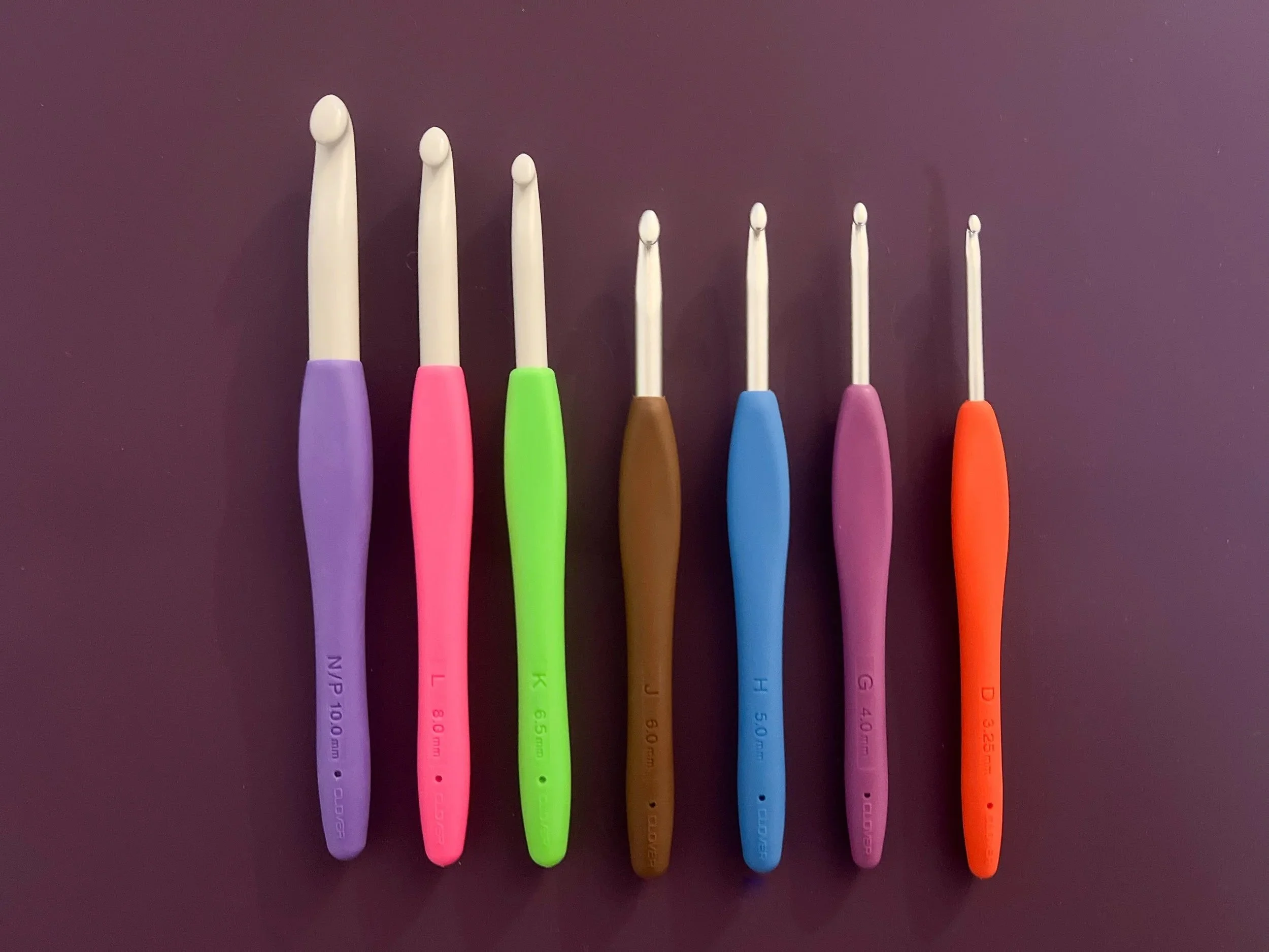 If you’re not sure what kind of hook to start with, I recommend a basic, aluminum hook. If you’re already deep into your crochet addiction you may be just fine to keep using the hook(s) you started with, but if you’re experiencing hand fatigue, pain, or your hook is snagging on your yarn, it might be time for an upgrade.